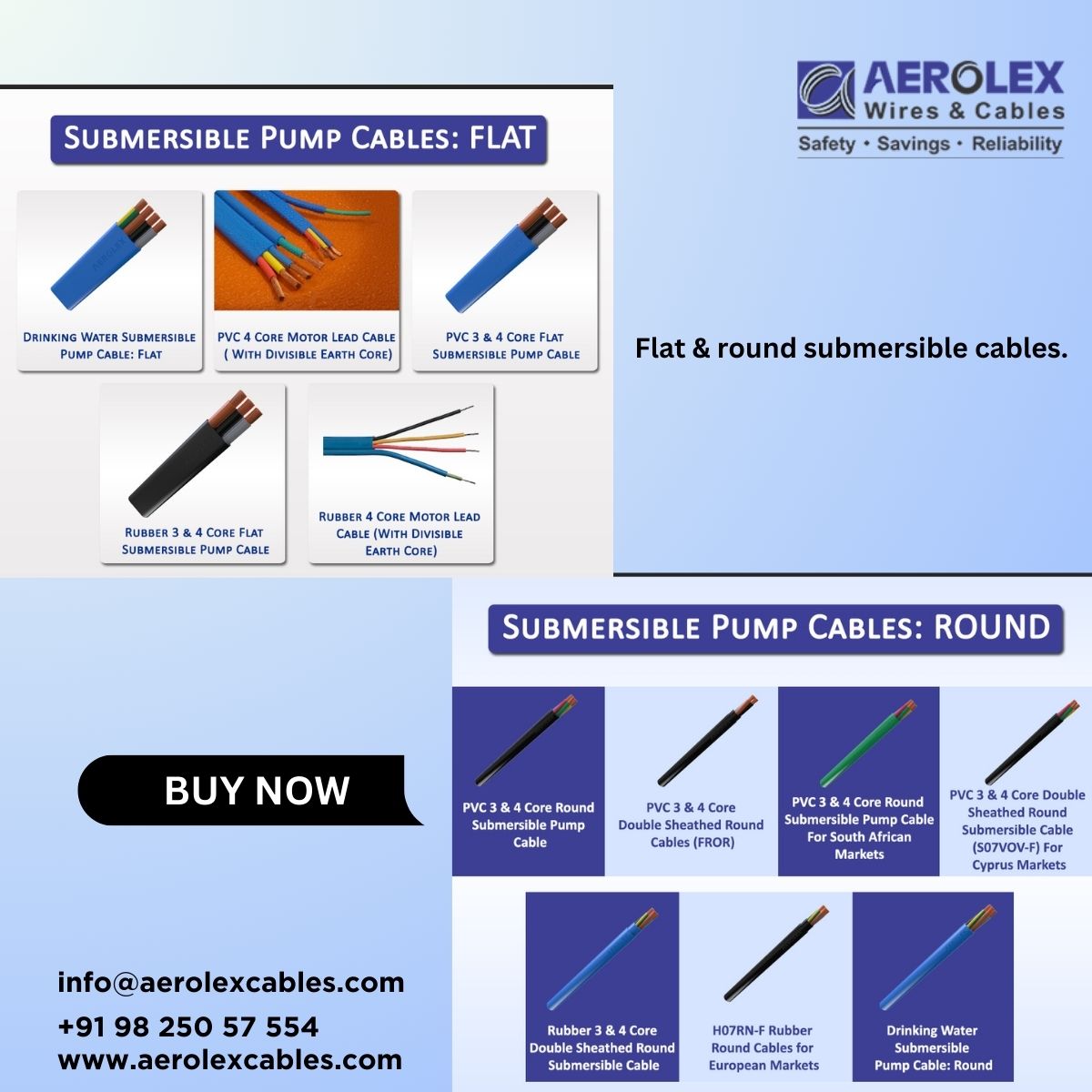 Flat & round submersible cables. Submersible cable...